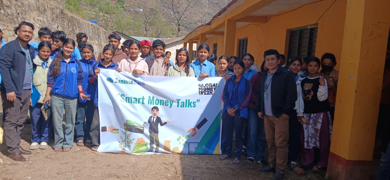 सानिमा बैंक लिमिटेडको मान्म शाखाले कालिकोट जिल्लाको खाँडाचक्र नगरपालिका–१ स्थित पञ्चदेवल माध्यमिक विद्यालयमा एक दिवसीय वित्तीय साक्षरता कार्यक्रम भव्यताका साथ सम्पन्न गरेको छ। विश्वव्यापी रूपमा मनाइने ‘ग्लोबल मनी विक २०२६’ को अवसर पारेर आयोजना गरिएको यस कार्यक्रममा कक्षा ९ र १० मा अध्ययनरत करिब ६० जना विद्यार्थीहरूको उत्साहजनक सहभागिता रहेको थियो। “Smart Money Talks” भन्ने मूल नाराका साथ सञ्चालन गरिएको उक्त कार्यक्रममा बैंकका शाखा प्रमुख सुशील बिष्ट र अन्य प्रतिनिधिहरूले विद्यार्थीहरूलाई बचतको महत्त्व, बजेट व्यवस्थापन र आधुनिक बैंकिङ प्रणालीका बारेमा व्यवहारिक ज्ञान प्रदान गर्नुभएको थियो।